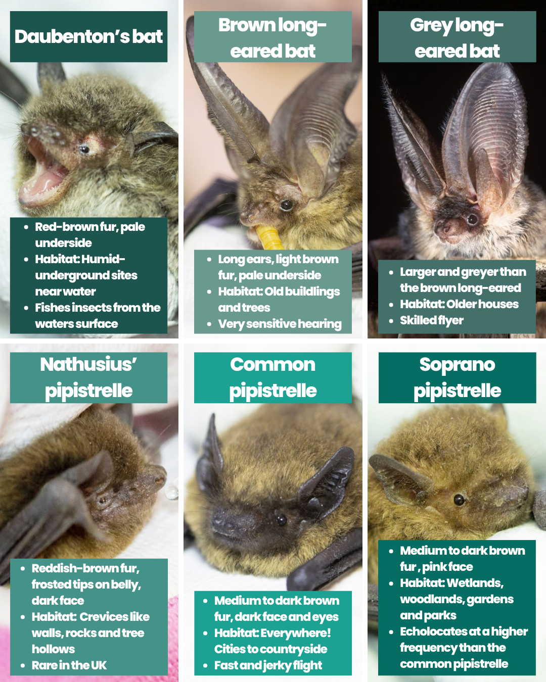 Our wildlife identification charts are here to help. Designed to be simple, visual, and easy to use, they allow you to compare key features and narrow down what you’ve seen, step by step. Whether you’re trying to identify a bat in flight, a mammal passing through your garden, or another species you’ve encountered, these charts will guide you through the process.